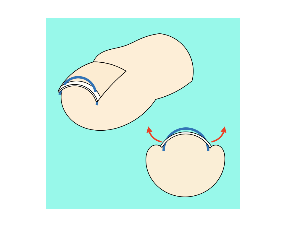 爪に針金を通し、その弾性力で爪を平らにする治療です。爪の浮いたところに針金を通すので、出血はありません。